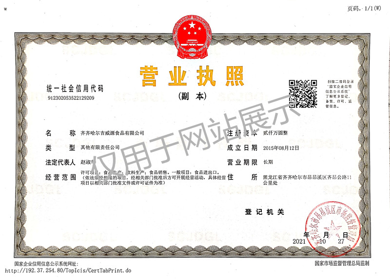 吉威源食品有限公司是齊齊哈爾著名企業(yè)集團(tuán)華威集團(tuán)有限公司全資新建的,企業(yè)占地18.2萬平方米,一期建成2萬余平方米生產(chǎn)及辦公區(qū)。有國內(nèi)一流先進(jìn)成套生產(chǎn)設(shè)備近百臺套,組成自動化程度很高的生產(chǎn)流水線。安全、衛(wèi)生、環(huán)保配套設(shè)施齊全,全面達(dá)到國家有關(guān)標(biāo)準(zhǔn)要求。企業(yè)已經(jīng)全面完成一期建設(shè),滿負(fù)荷產(chǎn)能將達(dá)到每年萬噸成品產(chǎn)出規(guī)模,投產(chǎn)后將成為拉動區(qū)域綠色種植業(yè)及養(yǎng)殖業(yè)發(fā)展的領(lǐng)軍型企業(yè)。